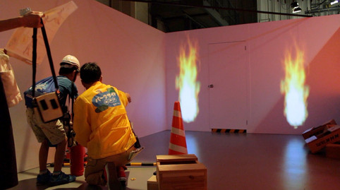 弊社オリジナルのプロジェクションマッピング消火体験。